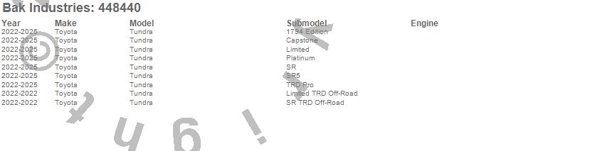 Brand: BAK IndustriesPart Number: 448440Tonneau Cover Type: Black - Aluminum - Matte FinishUPC: 192631044697
