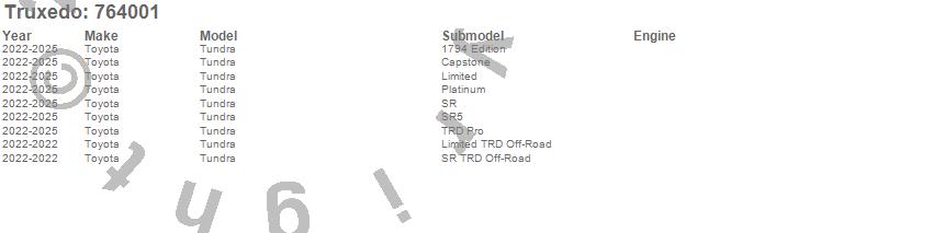 Below is an abbreviated list of applications for the TruXedo Deuce Tonneau Cover.Tundra, Toyota, 2026, 2025, 2024, 2023, 2022
