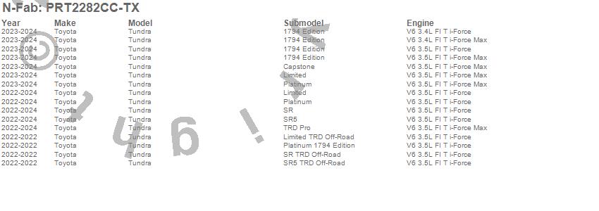 Below is an abbreviated list of applications for the Predator Pro Cab Length Step.Tundra, Toyota, 2025, 2024, 2023, 2022