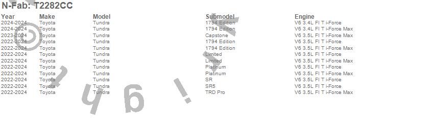 Below is an abbreviated list of applications for the Wheel To Wheel Nerf Step Bar.Tundra, Toyota, 2025, 2024, 2023, 2022