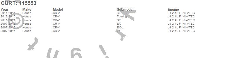 Below is an abbreviated list of applications for the Class I 1.25 in. Receiver Hitch.CR-V, Honda, 2016, 2015, 2014, 2013, 2012, 2011, 2010, 2009, 2008, 2007