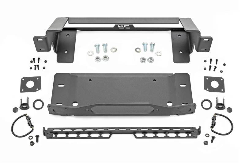 Brand: Rough CountryPart Number: 51066Winch Mount Plate Type: Incl. Winch Tray - Mounting Bracket - Sensor Mount Kit - [2] Sensor Mount Plate - [4] .75 in. Spacer - Incl. 20 in. Light Bar Block Off GrillUPC: 840269912528