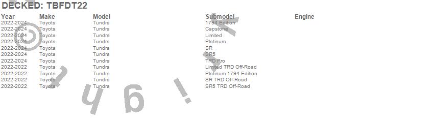 Below is an abbreviated list of applications for the DECKED Tool Box.Tundra, Toyota, 2026, 2025, 2024, 2023, 2022