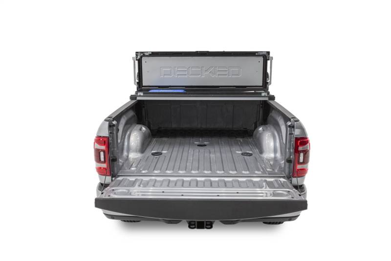 Brand: DECKEDPart Number: TBFDT22Tool Box - Truck Bed Rail-to-Rail Type: 76 in. L x 20.5 in. H x 22 in. W - Full Size - Deep Tub - Waterproof - Includes Snack Tray - BlackUPC: 850025181990
