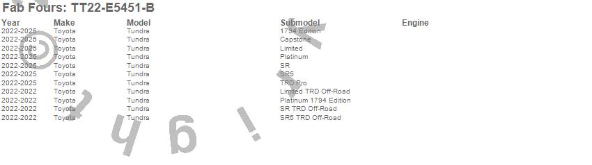 Below is an abbreviated list of applications for the Vengeance Rear Bumper.Tundra, Toyota, 2025, 2024, 2023, 2022