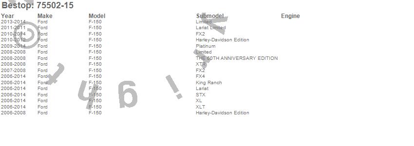Below is an abbreviated list of applications for the TrekStep Rear Mount Step.F-150, Ford, 2014, 2013, 2012, 2011, 2010, 2009, 2008, 2007, 2006