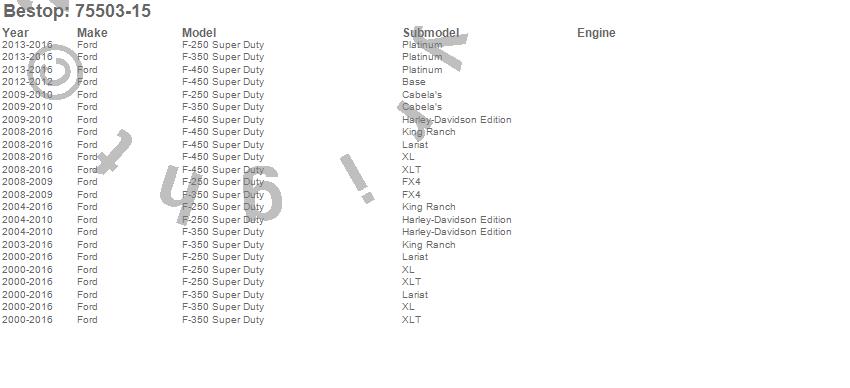 Below is an abbreviated list of applications for the TrekStep Rear Mount Step.F-250 Super Duty, F-350 Super Duty, F-450 Super Duty, Ford, 2016, 2015, 2014, 2013, 2012, 2011, 2010, 2009, 2008, 2007, 2006, 2005, 2004, 2003, 2002, 2001