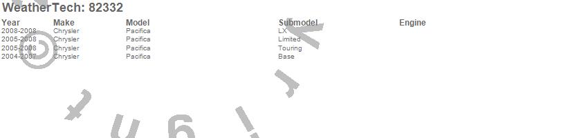Below is an abbreviated list of applications for the Side Window Deflector Set.Pacifica, Chrysler, 2008, 2007, 2006, 2005, 2004