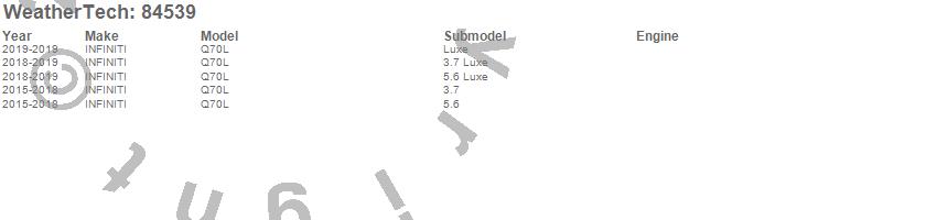 Below is an abbreviated list of applications for the Side Window Deflector Set.Q70L, INFINITI, 2019, 2018, 2017, 2016, 2015