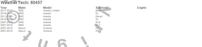 Below is an abbreviated list of applications for the Side Window Deflector.Acadia, Acadia Limited, Outlook, GMC, Saturn, 2017, 2016, 2015, 2014, 2013, 2012, 2011, 2010, 2009, 2008, 2007