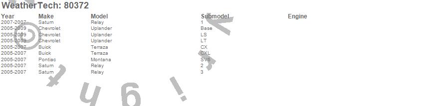 Below is an abbreviated list of applications for the Side Window Deflector.Montana, Relay, Terraza, Uplander, Buick, Chevrolet, Pontiac, Saturn, 2009, 2008, 2007, 2006, 2005