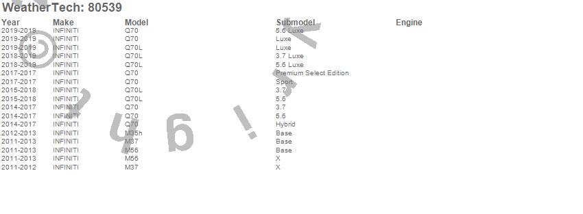 Below is an abbreviated list of applications for the Side Window Deflector.M35h, M37, M56, Q70, Q70L, INFINITI, 2019, 2018, 2017, 2016, 2015, 2014, 2013, 2012, 2011