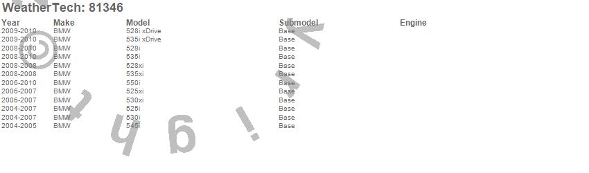 Below is an abbreviated list of applications for the Side Window Deflector.525i, 525xi, 528i, 528i xDrive, 528xi, 530i, 530xi, 535i, 535i xDrive, 535xi, 545i, 550i, BMW, 2010, 2009, 2008, 2007, 2006, 2005, 2004