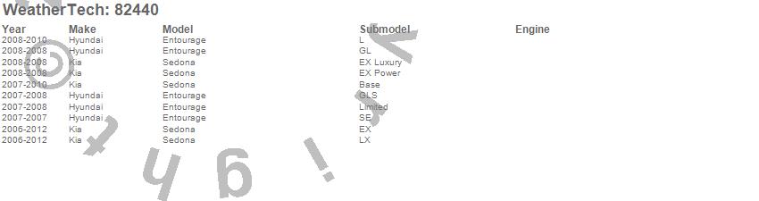 Below is an abbreviated list of applications for the Side Window Deflector Set.Entourage, Sedona, Hyundai, Kia, 2012, 2011, 2010, 2009, 2008, 2007, 2006