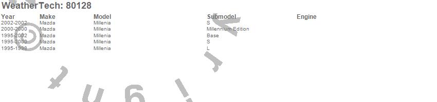 Below is an abbreviated list of applications for the Side Window Deflector.Millenia, Mazda, 2002, 2001, 2000, 1999, 1998, 1997, 1996, 1995