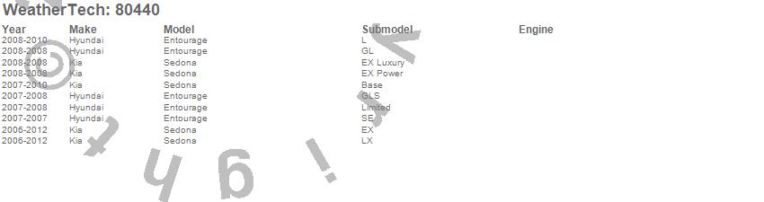 Below is an abbreviated list of applications for the Side Window Deflector.Entourage, Sedona, Hyundai, Kia, 2012, 2011, 2010, 2009, 2008, 2007, 2006