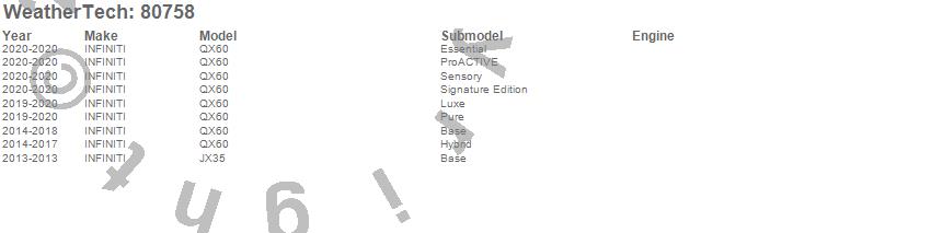Below is an abbreviated list of applications for the Side Window Deflector.JX35, QX60, INFINITI, 2020, 2019, 2018, 2017, 2016, 2015, 2014, 2013
