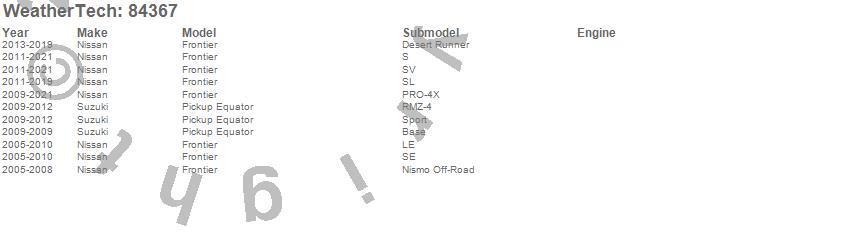 Below is an abbreviated list of applications for the Side Window Deflector Set.Equator, Frontier, Nissan, Suzuki, 2021, 2020, 2019, 2018, 2017, 2016, 2015, 2014, 2013, 2012, 2011, 2010, 2009, 2008, 2007, 2006