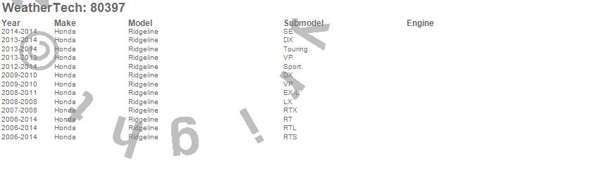 Below is an abbreviated list of applications for the Side Window Deflector.Ridgeline, Honda, 2014, 2013, 2012, 2011, 2010, 2009, 2008, 2007, 2006