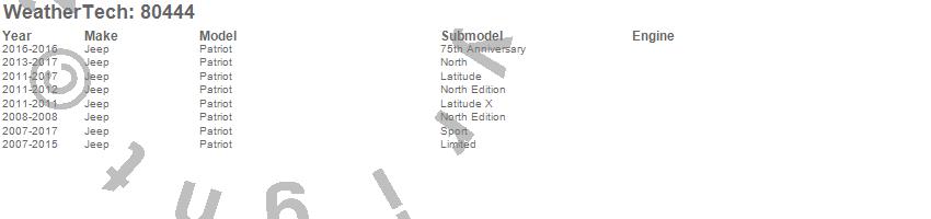 Below is an abbreviated list of applications for the Side Window Deflector.Patriot, Jeep, 2017, 2016, 2015, 2014, 2013, 2012, 2011, 2010, 2009, 2008, 2007