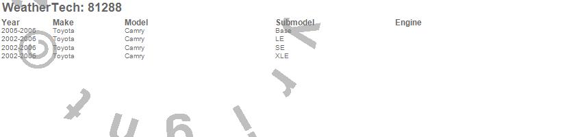 Below is an abbreviated list of applications for the Side Window Deflector.Camry, Toyota, 2006, 2005, 2004, 2003, 2002