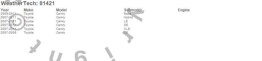 Below is an abbreviated list of applications for the Side Window Deflector.Camry, Toyota, 2011, 2010, 2009, 2008, 2007