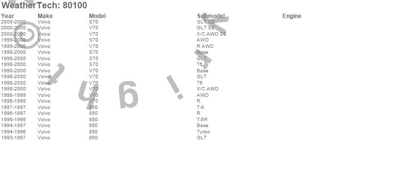 Below is an abbreviated list of applications for the Side Window Deflector.850, S70, V70, Volvo, 2000, 1999, 1998, 1997, 1996, 1995, 1994, 1993