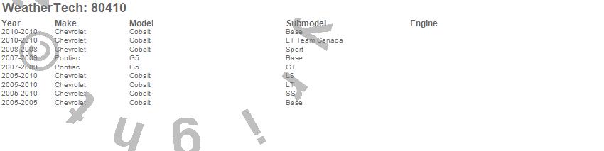 Below is an abbreviated list of applications for the Side Window Deflector.Cobalt, G5, Chevrolet, Pontiac, 2010, 2009, 2008, 2007, 2006, 2005