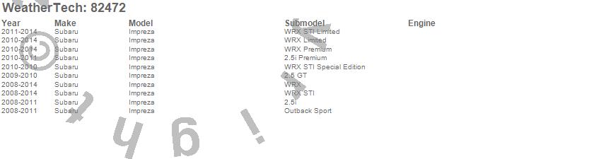 Below is an abbreviated list of applications for the Side Window Deflector Set.Impreza, Subaru, 2014, 2013, 2012, 2011, 2010, 2009, 2008