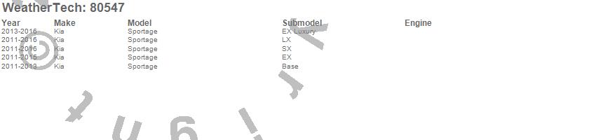 Below is an abbreviated list of applications for the Side Window Deflector.Sportage, Kia, 2016, 2015, 2014, 2013, 2012, 2011