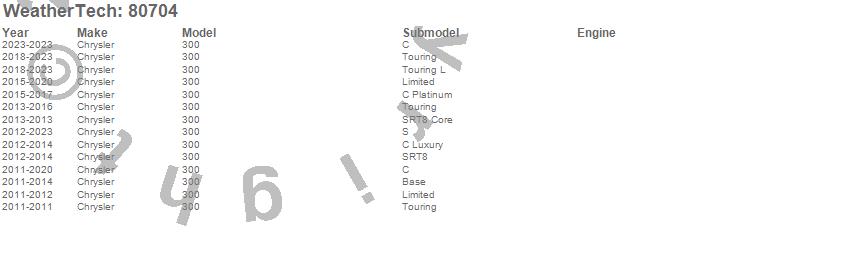 Below is an abbreviated list of applications for the Side Window Deflector.300, Chrysler, 2023, 2022, 2021, 2020, 2019, 2018, 2017, 2016, 2015, 2014, 2013, 2012, 2011