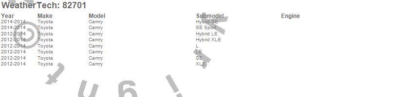 Below is an abbreviated list of applications for the Side Window Deflector Set.Camry, Toyota, 2014, 2013, 2012