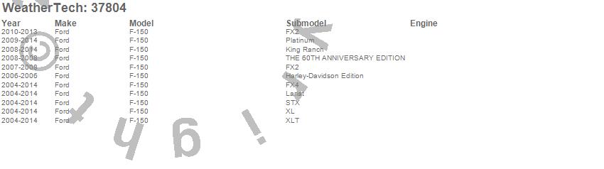 Below is an abbreviated list of applications for the WeatherTech TechLiner Bed Liner.F-150, Ford, 2014, 2013, 2012, 2011, 2010, 2009, 2008, 2007, 2006, 2005, 2004