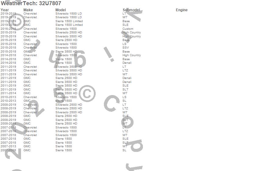 Below is an abbreviated list of applications for the Underliner Bedliner.Sierra 1500, Sierra 1500 Limited, Sierra 2500 HD, Sierra 3500 HD, Silverado 1500, Silverado 1500 LD, Silverado 2500 HD, Silverado 3500 HD, Chevrolet, GMC, 2019, 2018, 2017, 2016, 2015, 2014, 2013, 2012, 2011, 2010