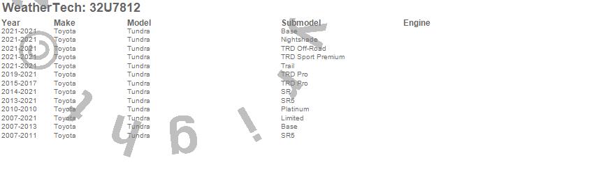 Brand: WeatherTechPart Number: 32U7812Truck Bed Liner Underliner Type: UPC: 787765912297