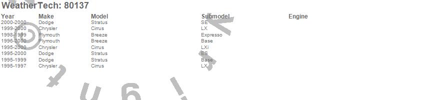 Below is an abbreviated list of applications for the Side Window Deflector.Breeze, Cirrus, Stratus, Chrysler, Dodge, Plymouth, 2000, 1999, 1998, 1997, 1996, 1995