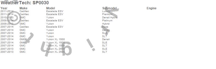 Below is an abbreviated list of applications for the Scratch Protection Film.Escalade ESV, Yukon, Yukon XL 1500, Yukon XL 2500, Cadillac, GMC, 2014, 2013, 2012, 2011, 2010, 2009, 2008, 2007