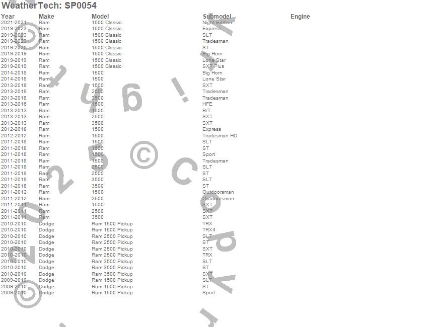 Below is an abbreviated list of applications for the Scratch Protection Film.1500, 1500 Classic, 2500, 3500, Ram 1500, Ram 2500, Ram 3500, Dodge, Ram, 2023, 2022, 2021, 2020, 2019, 2018, 2017, 2016, 2015, 2014, 2013