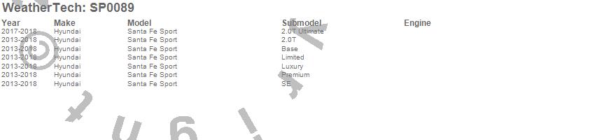 Below is an abbreviated list of applications for the Scratch Protection Film.Santa Fe Sport, Hyundai, 2018, 2017, 2016, 2015, 2014, 2013