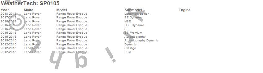 Below is an abbreviated list of applications for the Scratch Protection Film.Range Rover Evoque, Land Rover, 2019, 2018, 2017, 2016, 2015, 2014, 2013, 2012