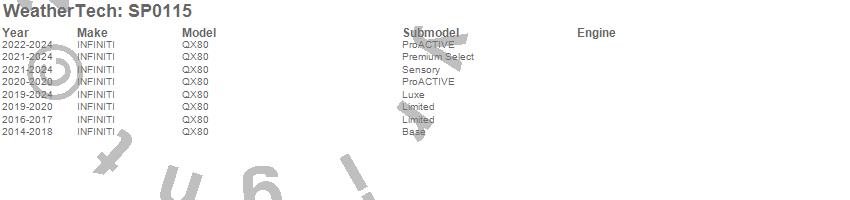 Below is an abbreviated list of applications for the Scratch Protection Film.QX80, INFINITI, 2024, 2023, 2022, 2021, 2020, 2019, 2018, 2017, 2016, 2015, 2014