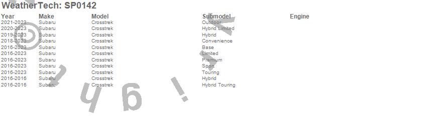 Below is an abbreviated list of applications for the Scratch Protection Film.Crosstrek, Subaru, 2023, 2022, 2021, 2020, 2019, 2018, 2017, 2016