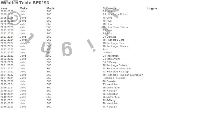 Below is an abbreviated list of applications for the Scratch Protection Film.S60, Volvo, 2025, 2024, 2023, 2022, 2021, 2020, 2019