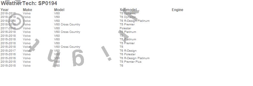 Below is an abbreviated list of applications for the Scratch Protection Film.V60, V60 Cross Country, Volvo, 2018, 2017, 2016, 2015