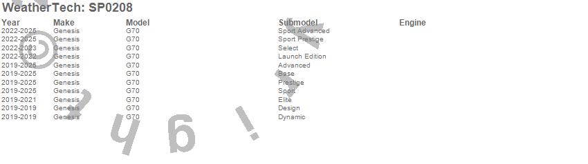 Below is an abbreviated list of applications for the Scratch Protection Film.G70, Genesis, 2025, 2024, 2023, 2022, 2021, 2020, 2019