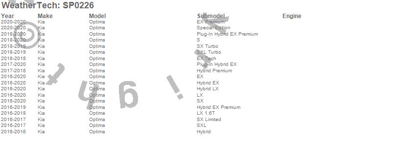Below is an abbreviated list of applications for the Scratch Protection Film.Optima, Kia, 2020, 2019, 2018, 2017, 2016