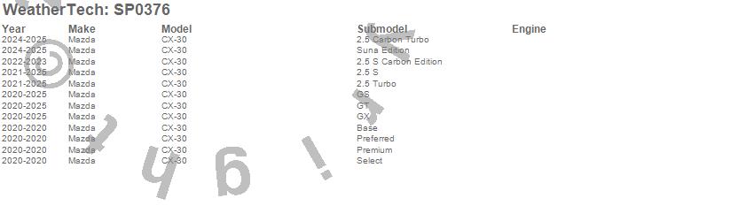 Below is an abbreviated list of applications for the Scratch Protection Film.CX-30, Mazda, 2026, 2025, 2024, 2023, 2022, 2021, 2020