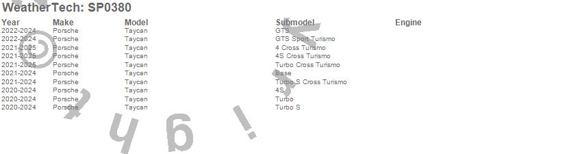 Below is an abbreviated list of applications for the Scratch Protection Film.Taycan, Porsche, 2025, 2024, 2023, 2022, 2021, 2020