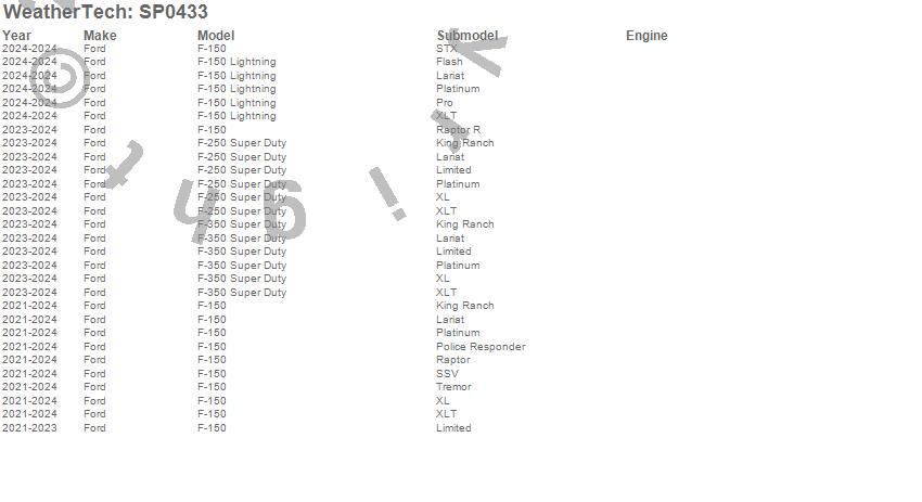 Below is an abbreviated list of applications for the Scratch Protection Film.F-150, F-150 Lightning, F-250 Super Duty, F-350 Super Duty, Ford, 2026, 2025, 2024, 2023, 2022, 2021