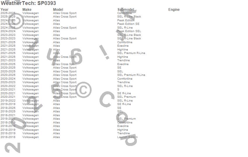 Below is an abbreviated list of applications for the Scratch Protection Film.Atlas, Atlas Cross Sport, Volkswagen, 2026, 2025, 2024, 2023, 2022, 2021, 2020, 2019, 2018